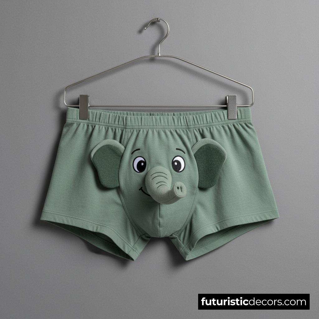A: The Chill Elephant Boxer is a uniquely designed pair of men’s underwear that combines comfort, humor, and creativity. It features a playful elephant face on the front, complete with 3D ears and a soft trunk. While it’s a functional boxer for daily wear, it’s also a conversation-starting piece that adds a lighthearted twist to men’s fashion. It’s the perfect blend of practicality and personality — a piece that makes dressing fun again.