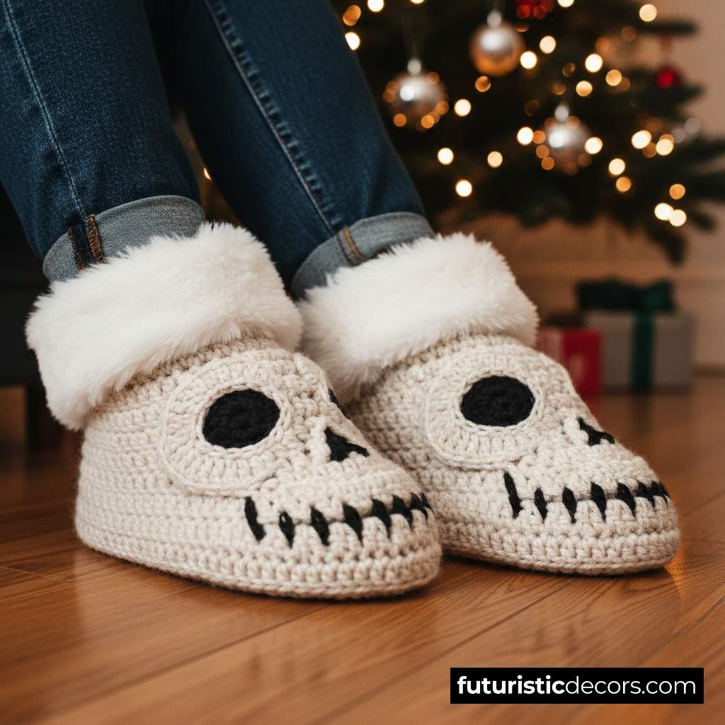 One of the best parts about Crochet Skull Slippers is the abundance of creative styles. From minimal to dramatic, from classic skeleton looks to cute pastel options, there’s a pair for every personality.
