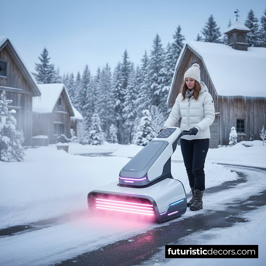 This Heat Snow Blower takes design cues from robotic engineering. Its low-center structure and glowing blue LED strips make it look straight out of a sci-fi film. Equipped with AI-based sensors, the ThermoGlide Pro X detects snow thickness and adjusts its heating output instantly.