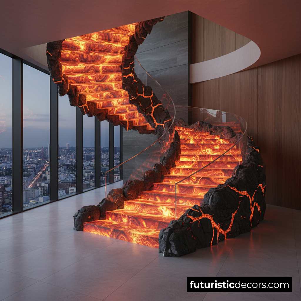 This evolution transforms the staircase into more than a structure; it becomes a living feature — one that evolves with mood, environment, and technology. Expect to see lava-themed designs appearing in public spaces, museums, and boutique retail environments as well.