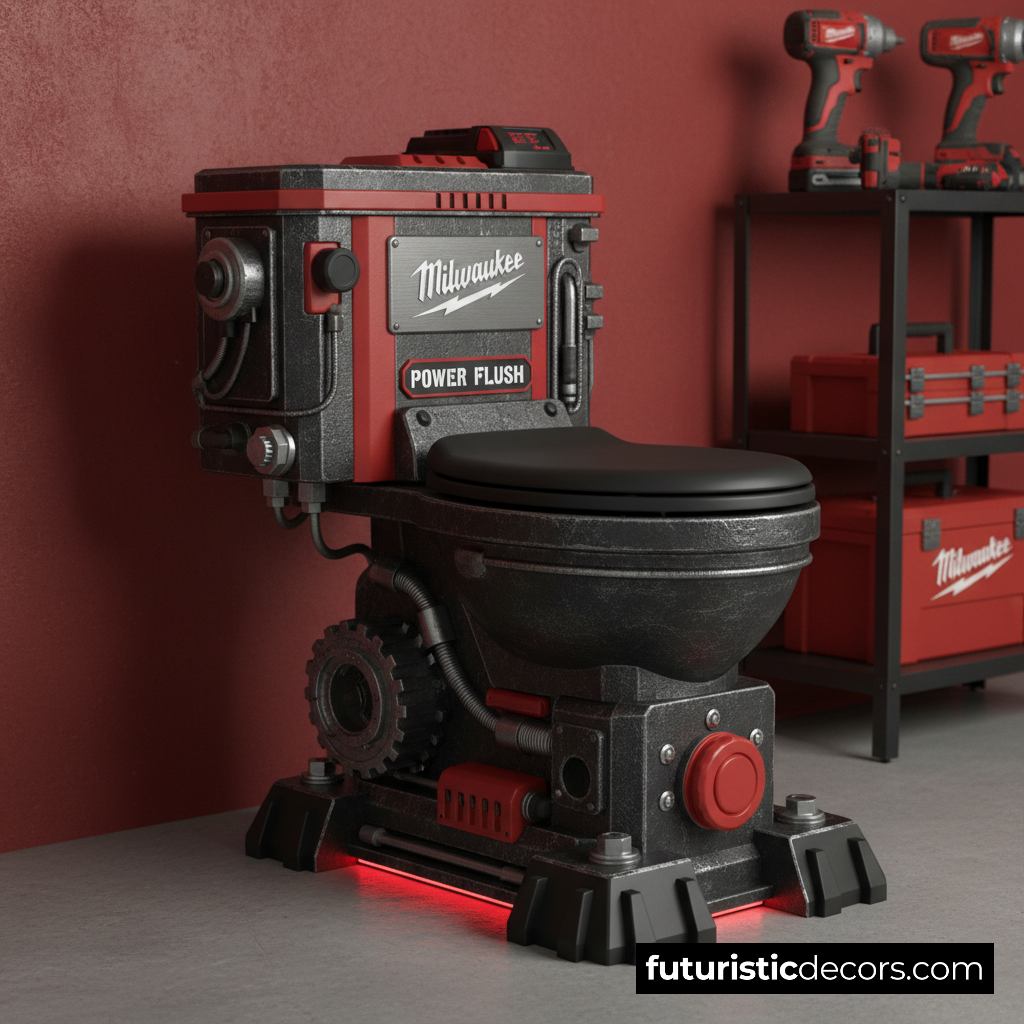 Imagine walking into a bathroom and seeing a toilet that looks like a cross between a power drill station and an armored machine. The Milwaukee Tools Toilet transforms what is typically a mundane fixture into an aesthetic centerpiece.