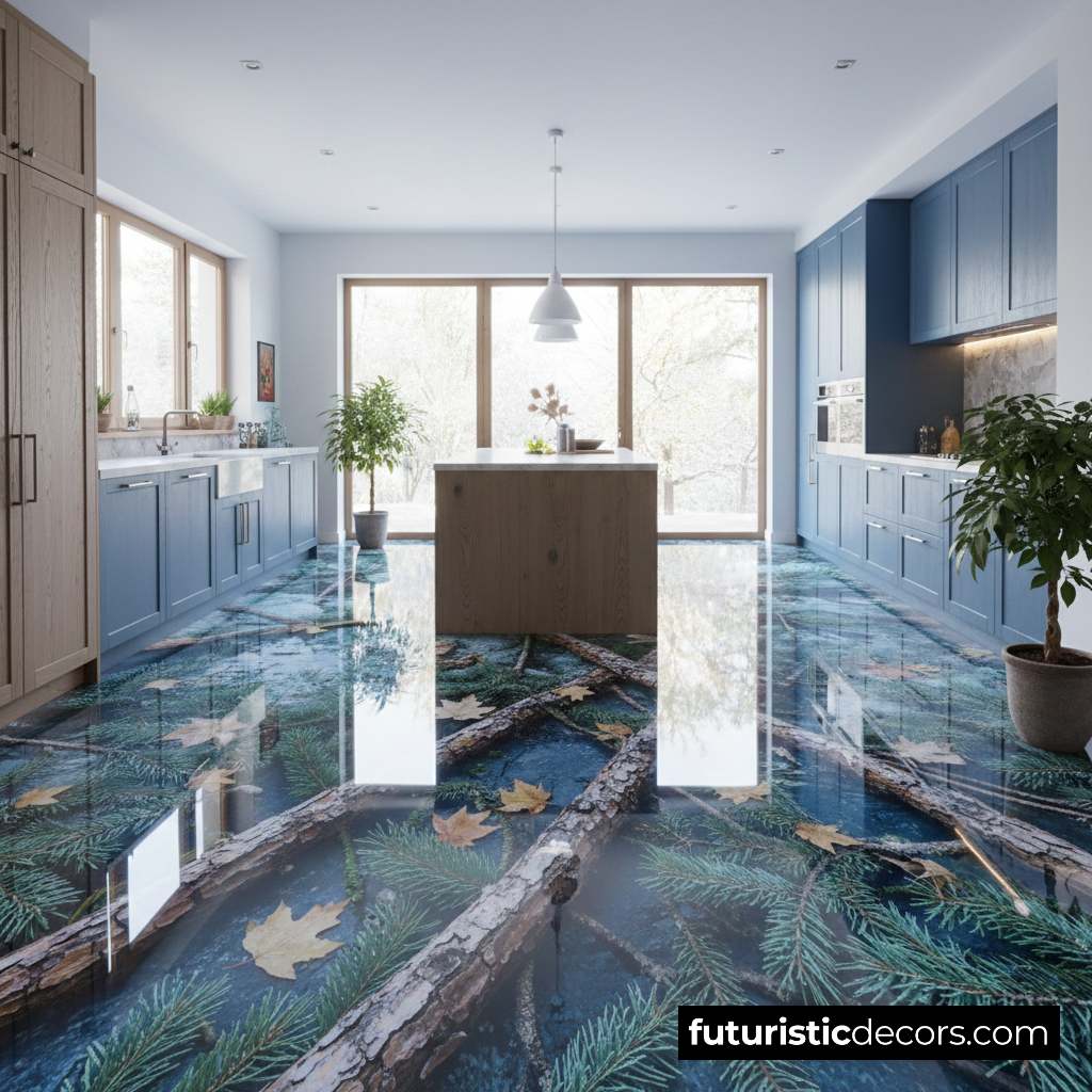 Imagine walking into your kitchen and feeling as though you’re stepping directly into a quiet forest — pine needles beneath your feet, golden leaves scattered across branches, and the serenity of nature captured forever in a glossy surface. That breathtaking illusion is no longer a dream. With Pine Tree Epoxy Flooring, designers and homeowners can now merge nature’s poetry with modern craftsmanship to create spaces that are not only durable but incredibly artistic and lifelike.