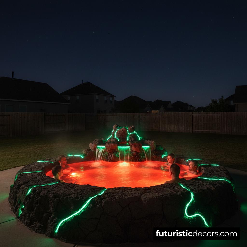 - Glowing Lava Effects: Integrated LED lighting beneath water channels creates glowing streams of orange, red, or even neon hues. At night, the hot tub comes alive with fiery visual effects that rival a real eruption—minus the danger.