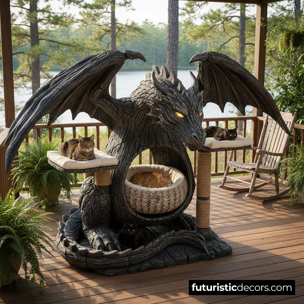 Pet furniture has shifted dramatically in recent years, moving toward handcrafted, visually stunning pieces that feel more like limited-edition furniture than mass-produced accessories. The Wooden Dragon Cat Tree reflects this modern direction by merging fantasy design with solid craftsmanship. It is no longer just a climbing structure—it’s décor, sculpture and pet habitat in one.